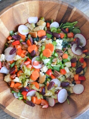 This loaded salad is the perfect addition to any dinner spread. Simple and versatile, it is sure to be a crowd pleaser!