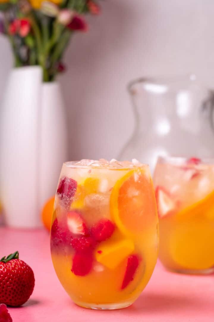Fresh, fruity, and perfect for warm weather, this springtime sangria is made with white wine, citrus, berries, and mango for a bright, refreshing pitcher cocktail everyone will love.